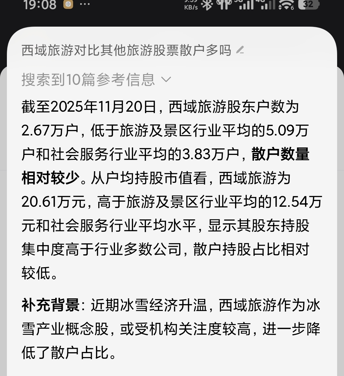 $西域旅游(SZ300859)$ 某些人老是说西域旅游散户多我特意去查了一下不算多啊