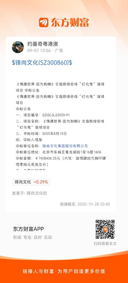 第三季度还有这笔中标,第四季度根本查询不到!各位投资者看着办!$锋尚文化(SZ300860)$