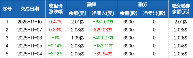 锋尚文化:融资净偿还681.09万元,融资余额2.01亿元(11-10)