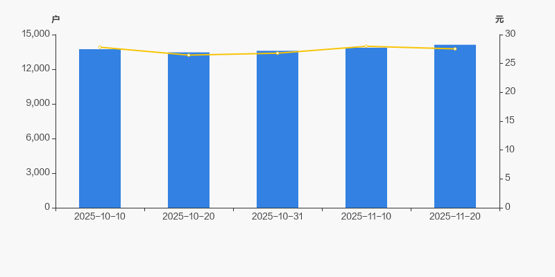 自2025年10月20日以来,公司股东户数连续3期上涨,截至目前增幅为4.89%。2025年10月20日至2025年11月20日区间股价上涨4.08%。