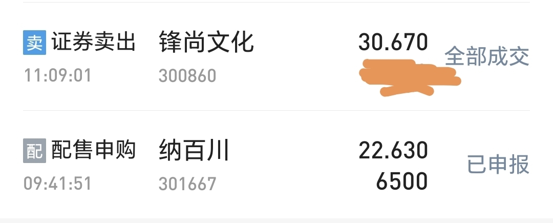 $锋尚文化(SZ300860)$ 30.67出来的,还没接回