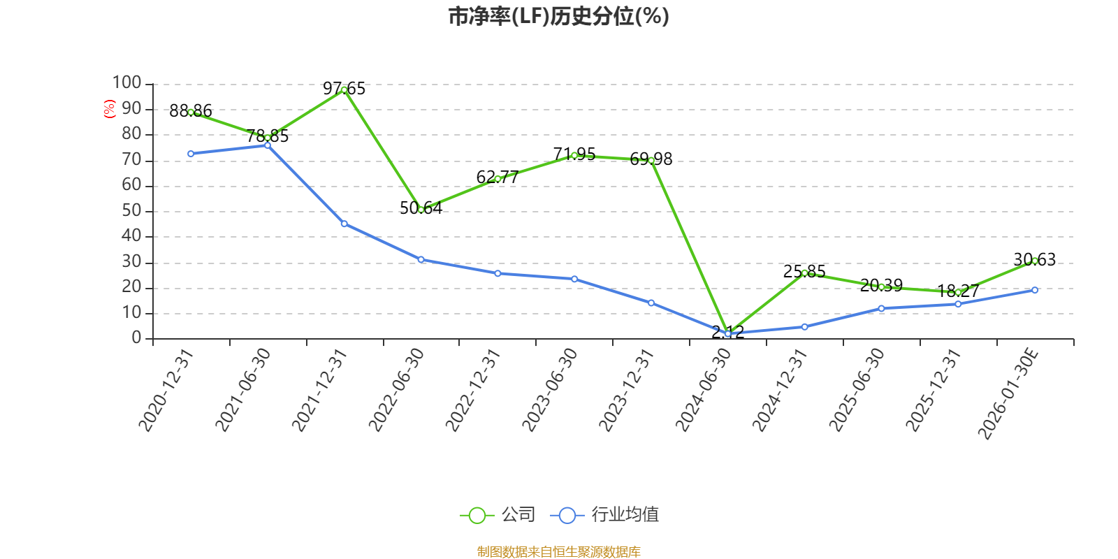 市盈率、市净率为负时,不显示当期分位数,会导致折线图中断。