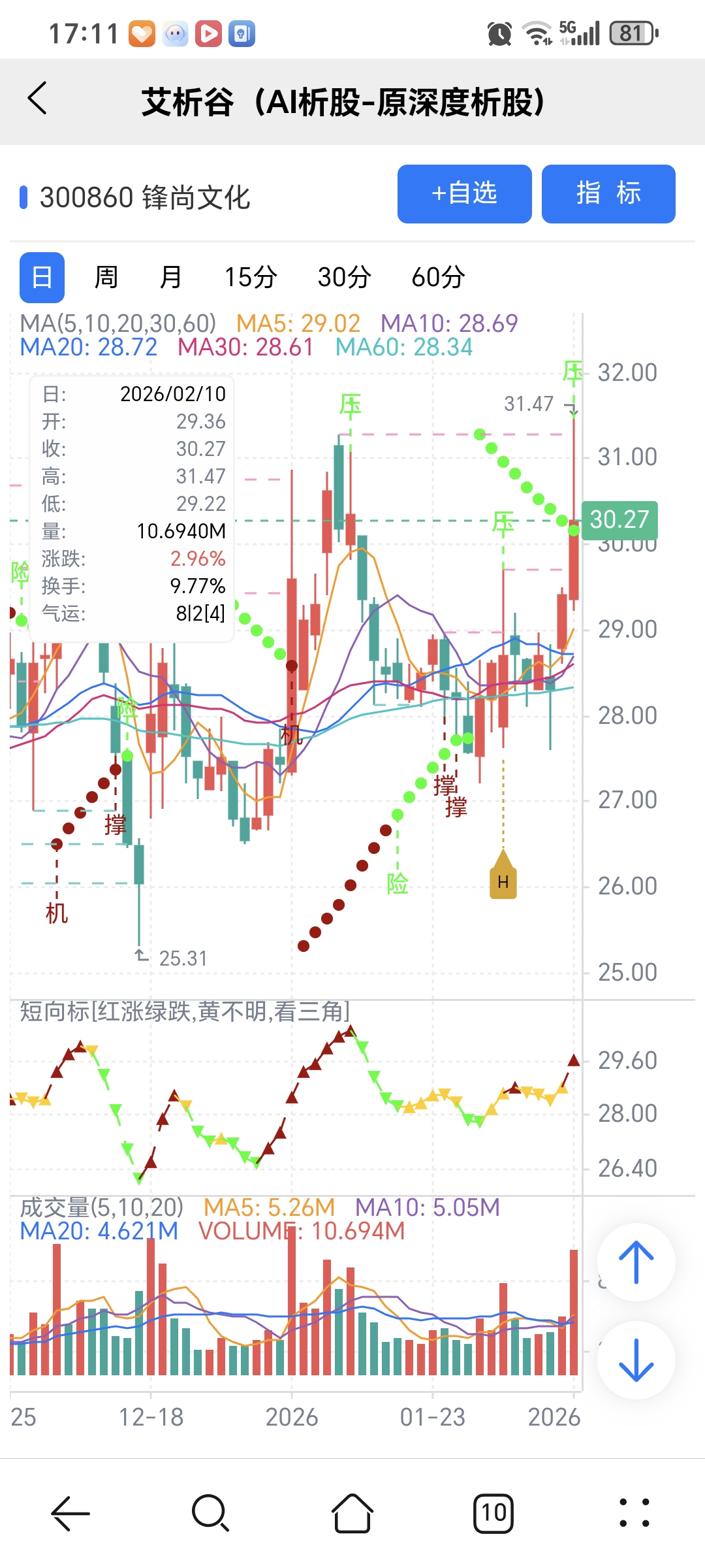 AI模型选股,量化指标识别关键点,简单技术分析确定买卖点,结合量化和人工综合运用,才能有优势。锋尚文化