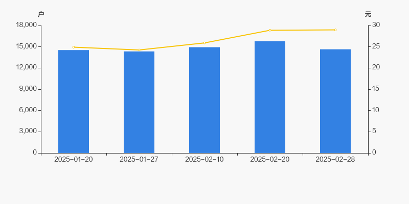 2025年1月20日至今,公司股东户数有所增长,区间涨幅为0.77%。2025年1月20日至2025年2月28日区间股价上涨16.35%。