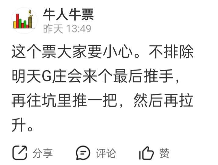 温馨提示: 1.根据《证券法》规定,禁止编造、传播虚假信息或者误导性信息,扰乱证券市场;2.用户在本社区发表的所有资料、言论等仅代表个人观点,与本网站立场无关,不对您构成任何投资建议。用户应基于自己的独立判断,自行决定证券投资并承担相应风险。《东方财富社区管理规定》