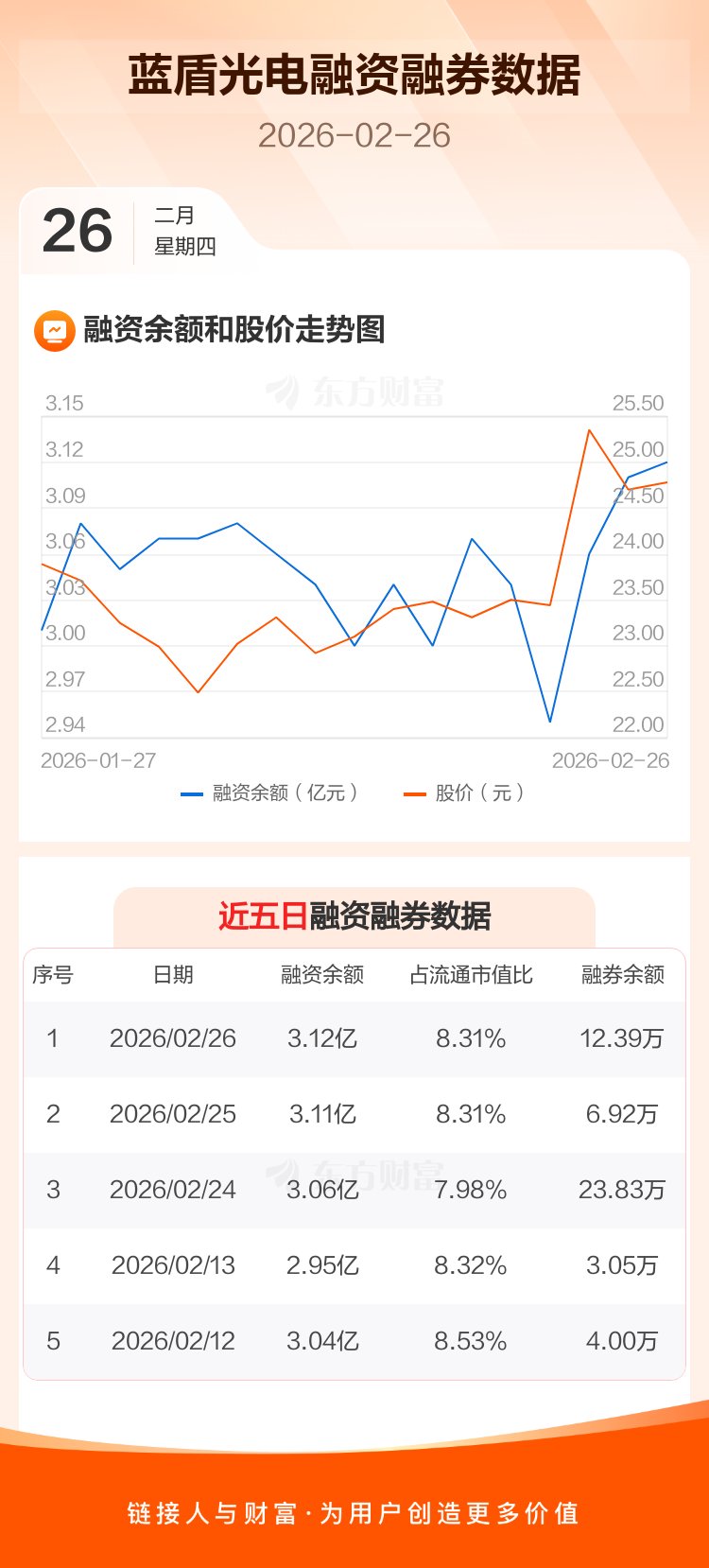 交易所最新数据显示,蓝盾光电于2026年2月26日获融资买入1677.21万元,融资偿还1564.02万元,当日融资净买入113.19万元。目前,该股融资余额3.12亿,占流通市值比例为8.31%。