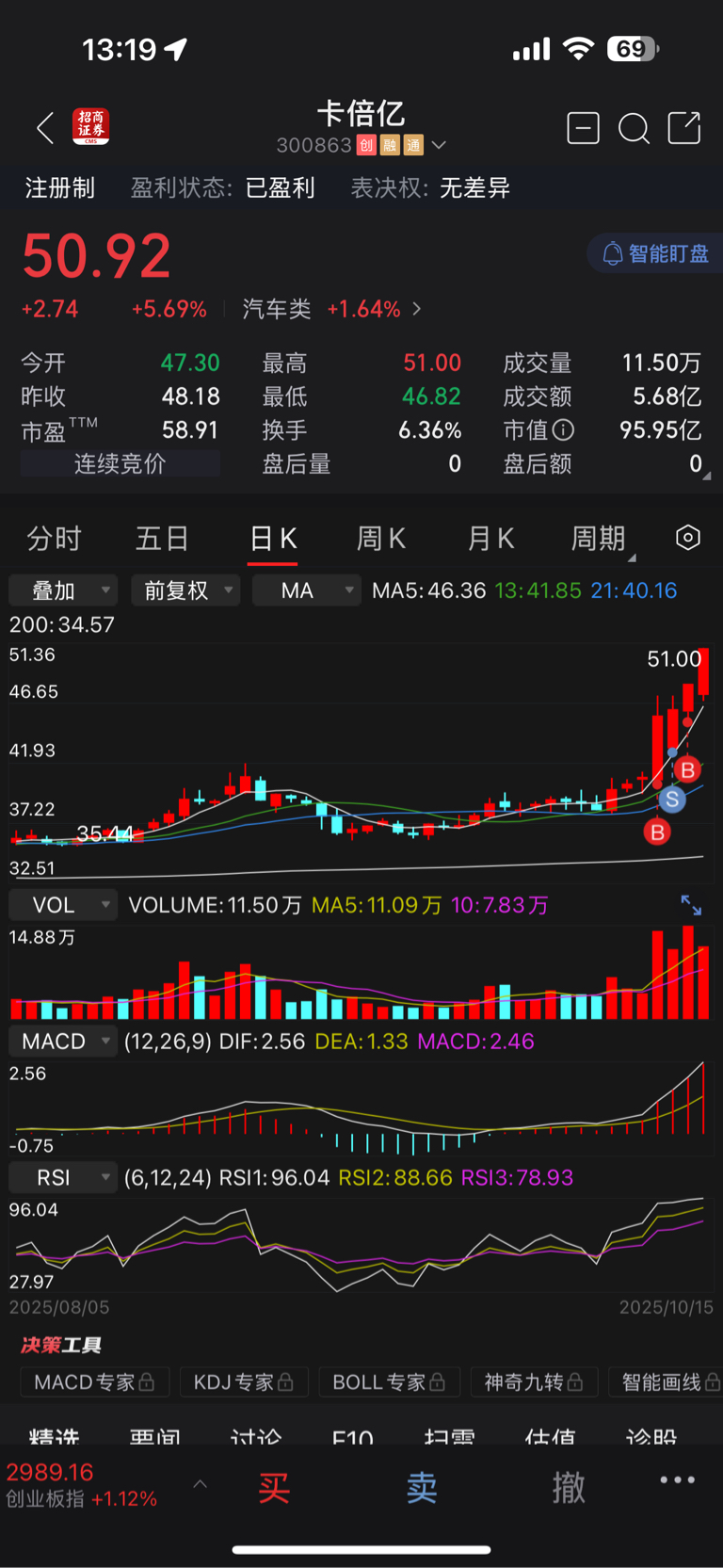 $卡倍亿(SZ300863)$ 两点半应该又要拉一波,给今天买进的兄弟坐过山车