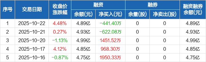 卡倍亿:融资净偿还441.4万元,融资余额4.89亿元(10-22)