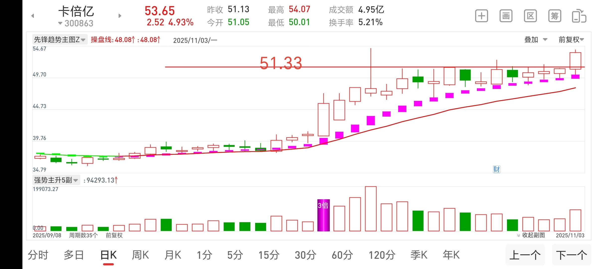 $卡倍亿(SZ300863)$ 今日成功加入小卡,突破51.33,跟进没商量!祝持有的大家好运!
