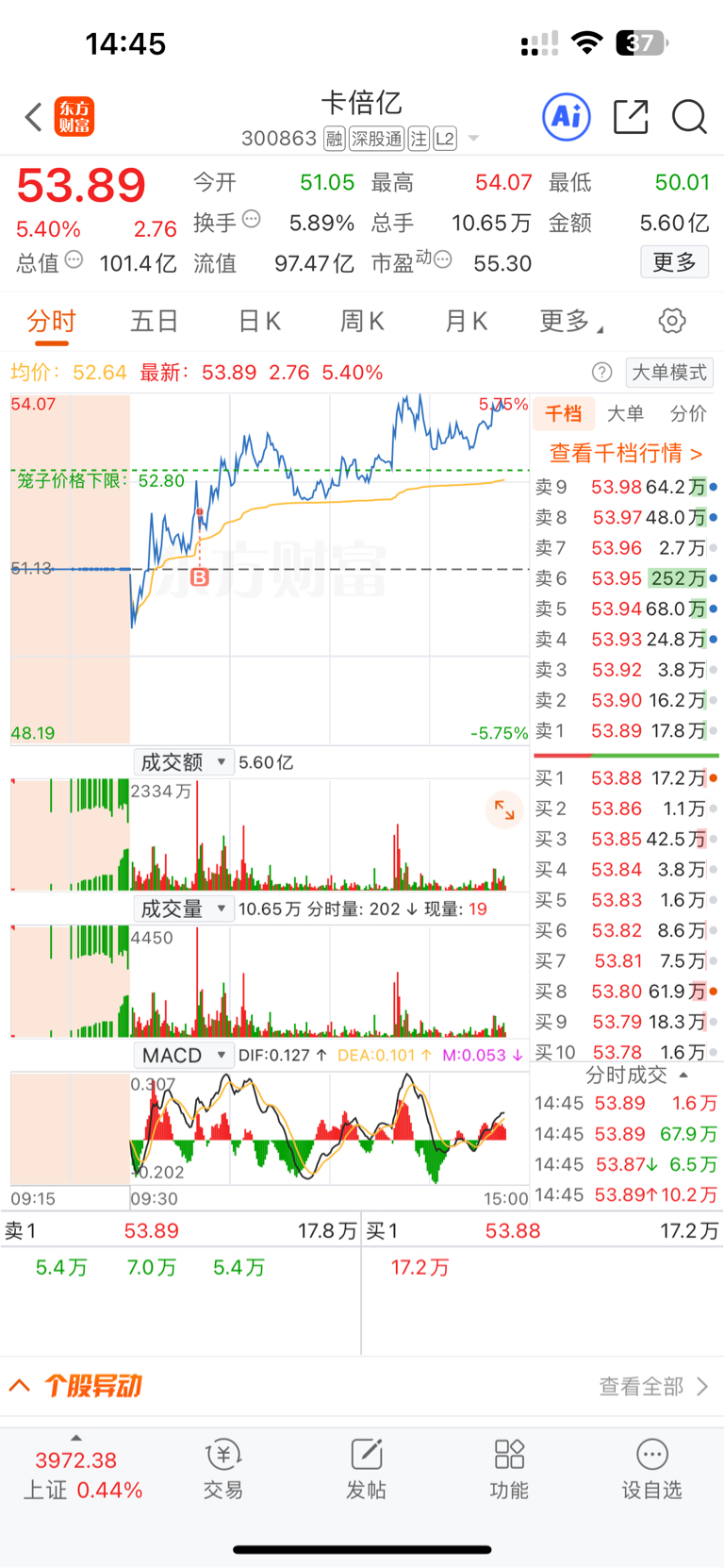 $卡倍亿(SZ300863)$ 建仓,破前面高点加重仓