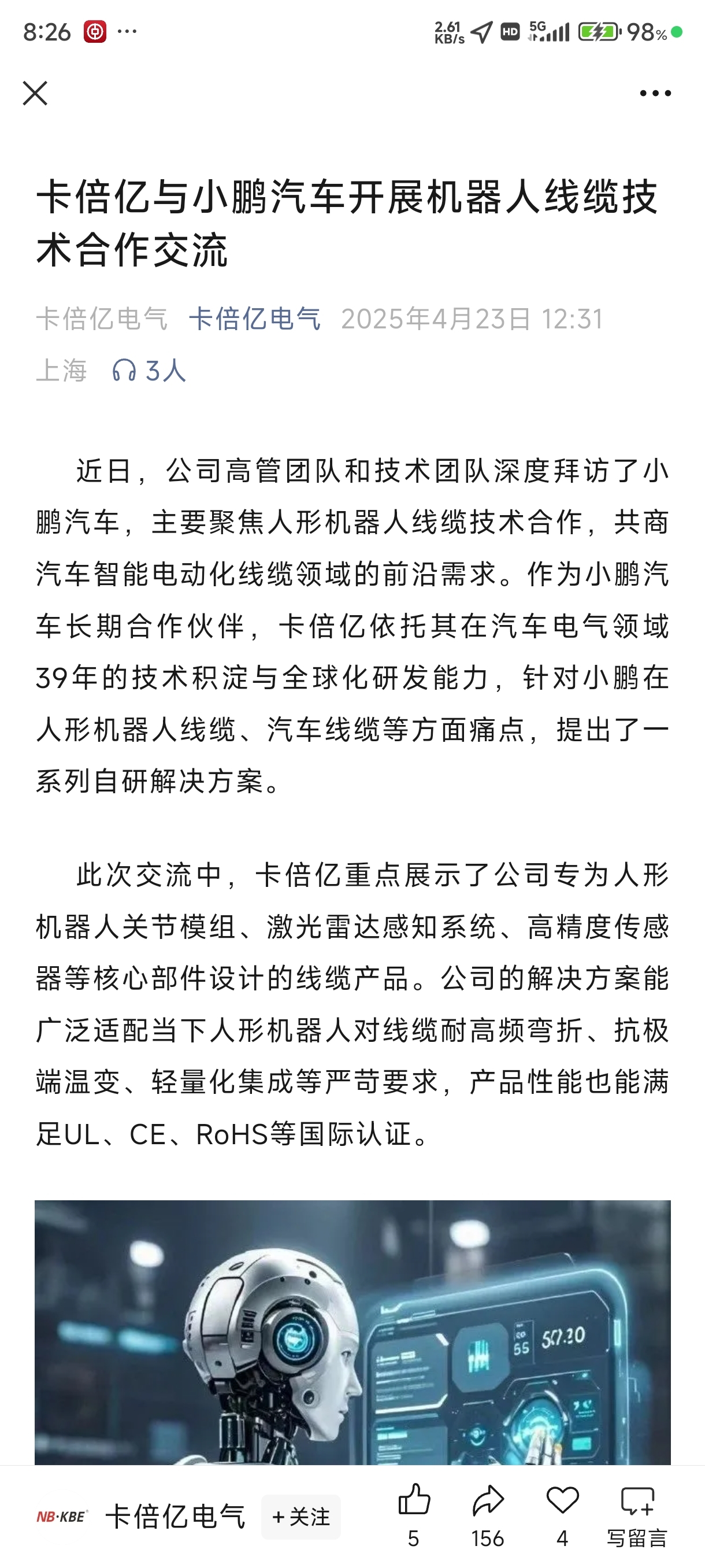 $卡倍亿(SZ300863)$ 正宗的小鹏人形机器人概念股。