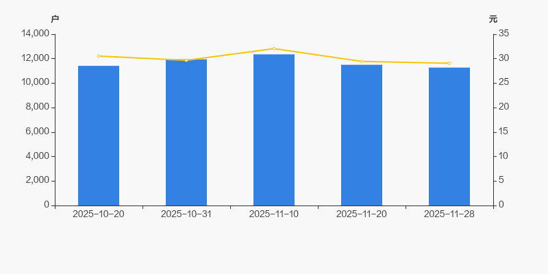 2025年10月20日至今,公司股东户数有所下降,区间跌幅为1.24%。2025年10月20日至2025年11月28日区间股价下降4.81%。