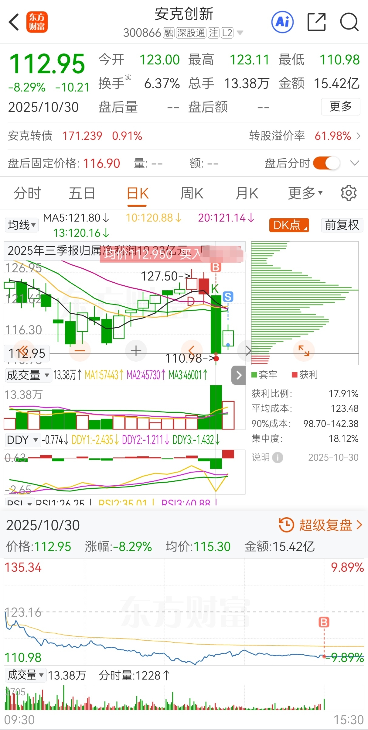 今买明卖,112.95买,114.49卖,实盘隔夜套利安克创新,成功收米走人!