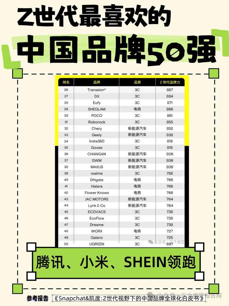 Z世代最喜爱的中国全球化品牌50强,安克家ANKER(排名19)、eufy(排名
