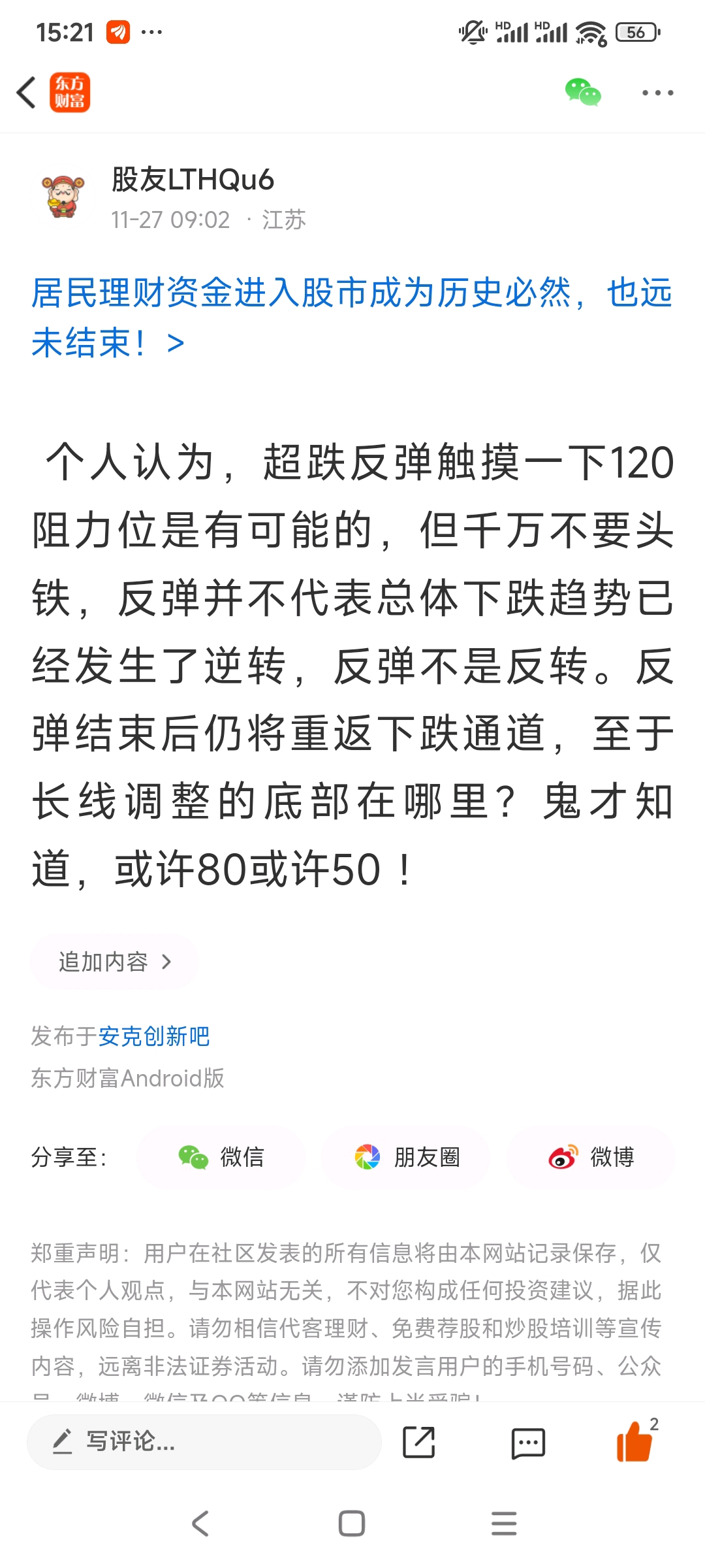 温馨提示: 1.根据《证券法》规定,禁止编造、传播虚假信息或者误导性信息,扰乱证券市场;2.用户在本社区发表的所有资料、言论等仅代表个人观点,与本网站立场无关,不对您构成任何投资建议。用户应基于自己的独立判断,自行决定证券投资并承担相应风险。《东方财富社区管理规定》