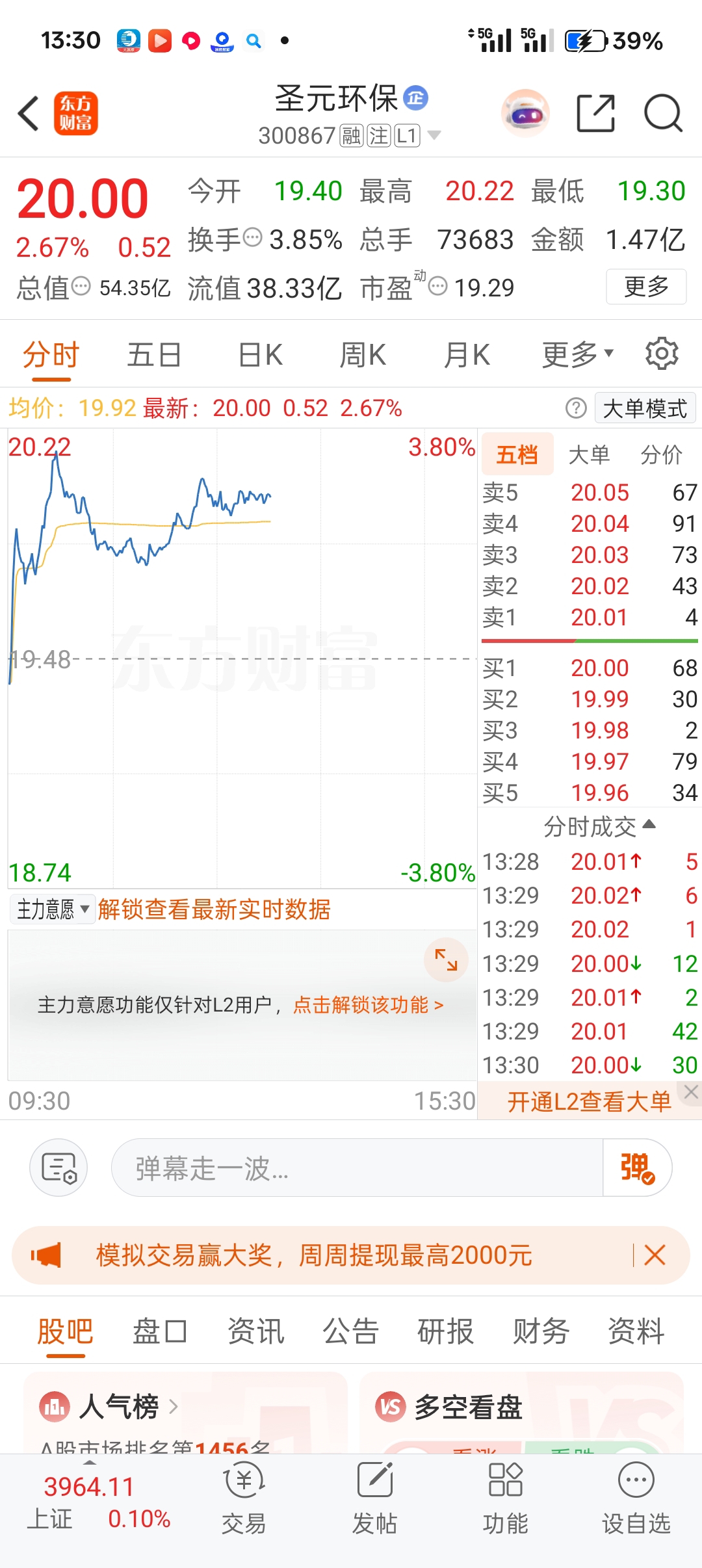 $圣元环保(SZ300867)$ 打开界面我还以为长了20%呢