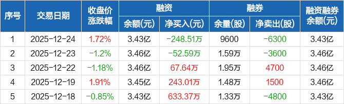 圣元环保:融资净偿还248.51万元,融资余额3.43亿元(12-24)