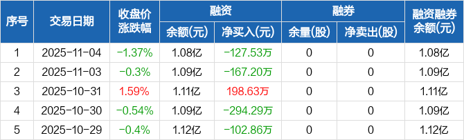 杰美特:融资净偿还127.53万元,融资余额1.08亿元(11-04)