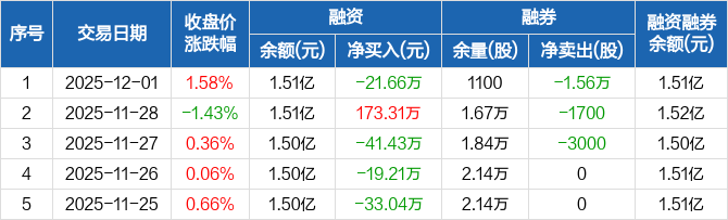 康泰医学:融资净偿还21.66万元,融资余额1.51亿元(12-01)