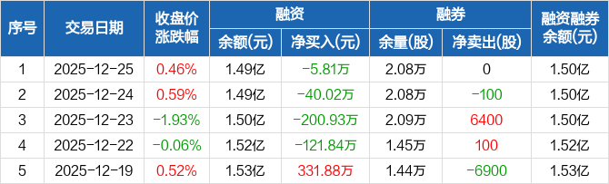 康泰医学:连续4日融资净偿还累计368.6万元(12-25)