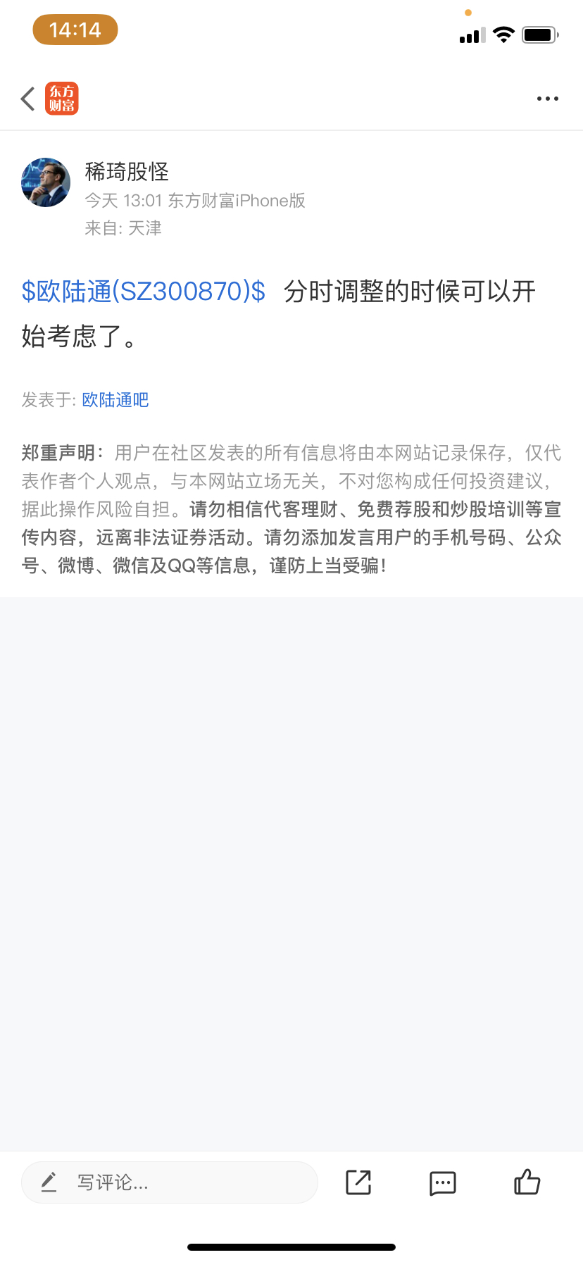$欧陆通(SZ300870)$ 大跌考虑机会。机会来了瞄着他。