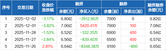 欧陆通:融资净偿还2612.86万元,融资余额6.8亿元(12-02)
