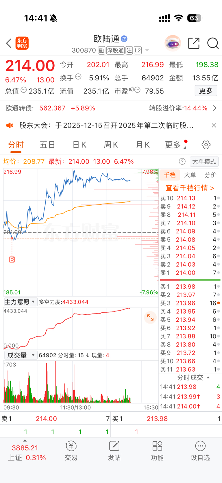 $欧陆通(SZ300870)$ 早盘介入今天表现已经很不错了