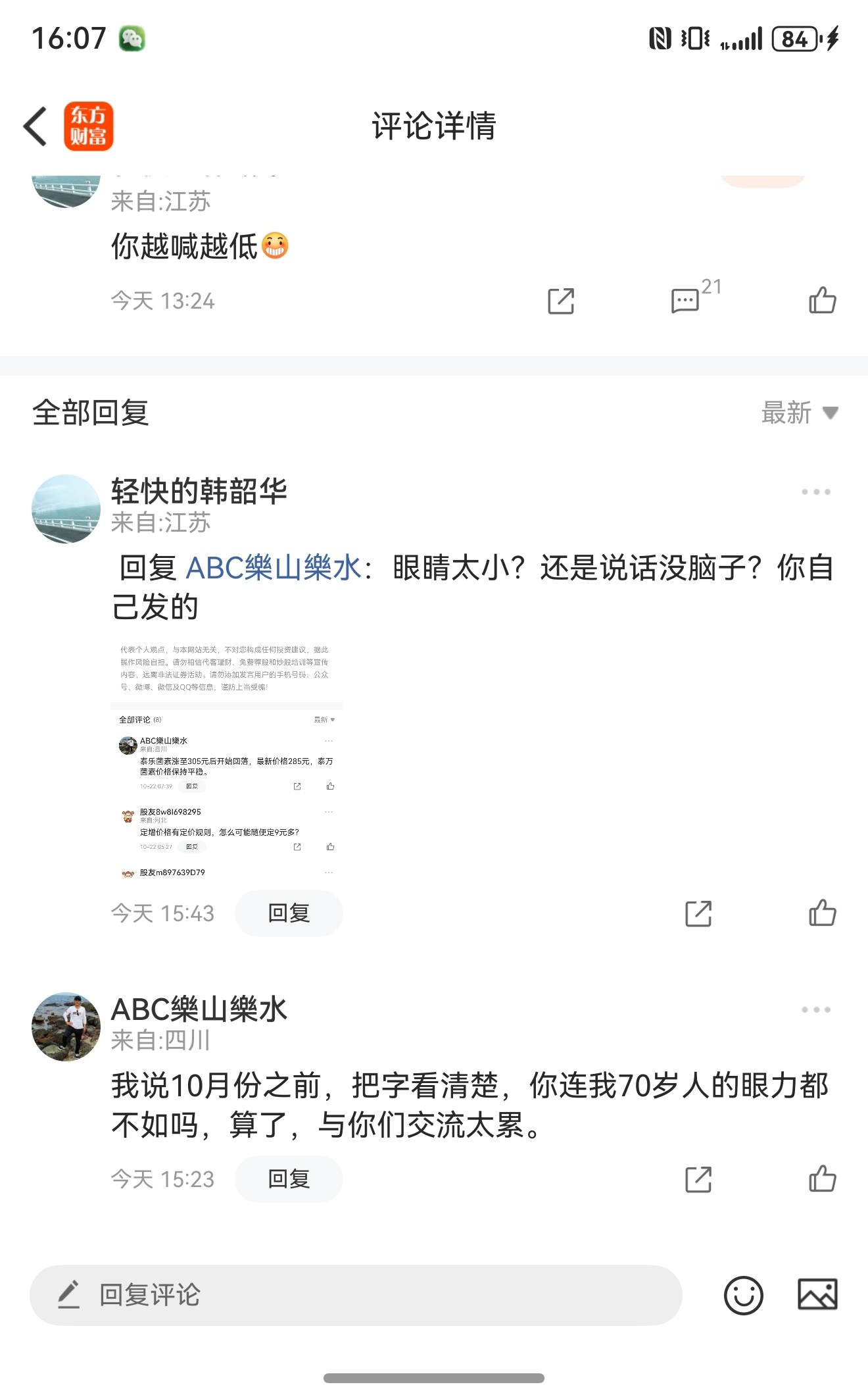 温馨提示: 1.根据《证券法》规定,禁止编造、传播虚假信息或者误导性信息,扰乱证券市场;2.用户在本社区发表的所有资料、言论等仅代表个人观点,与本网站立场无关,不对您构成任何投资建议。用户应基于自己的独立判断,自行决定证券投资并承担相应风险。《东方财富社区管理规定》