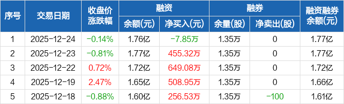 回盛生物:融资净偿还7.85万元,融资余额1.76亿元(12-24)