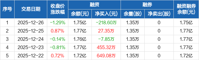 回盛生物:融资净偿还218.6万元,融资余额1.75亿元(12-26)