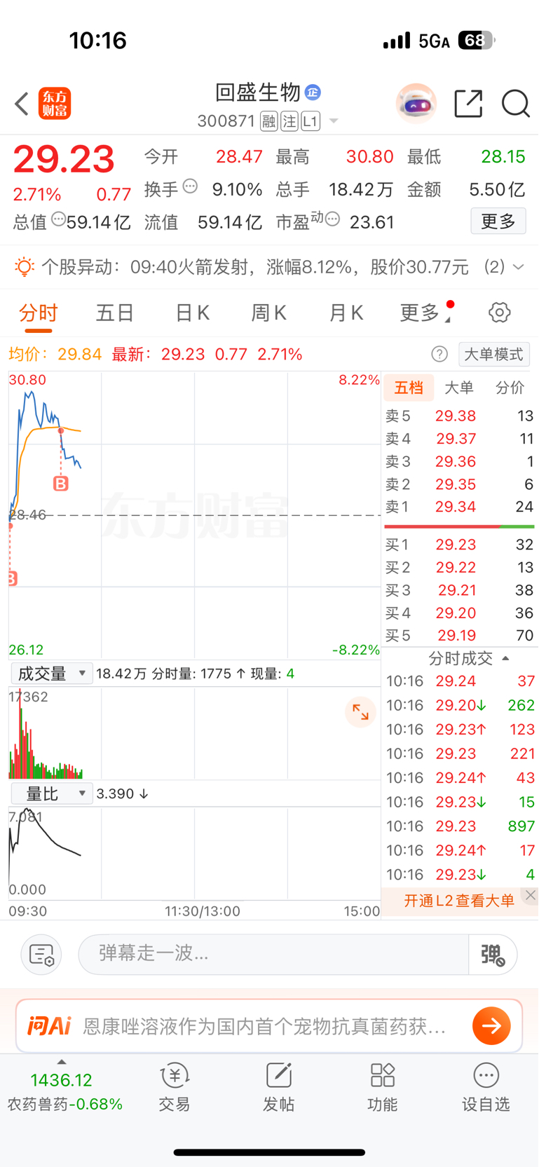 $回盛生物(SZ300871)$ 一看不对卖出点成了买入