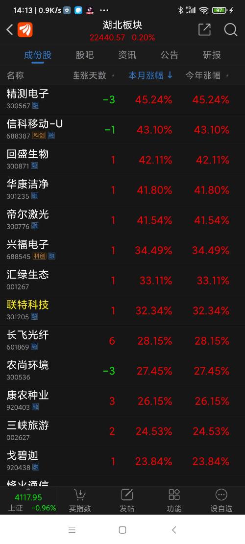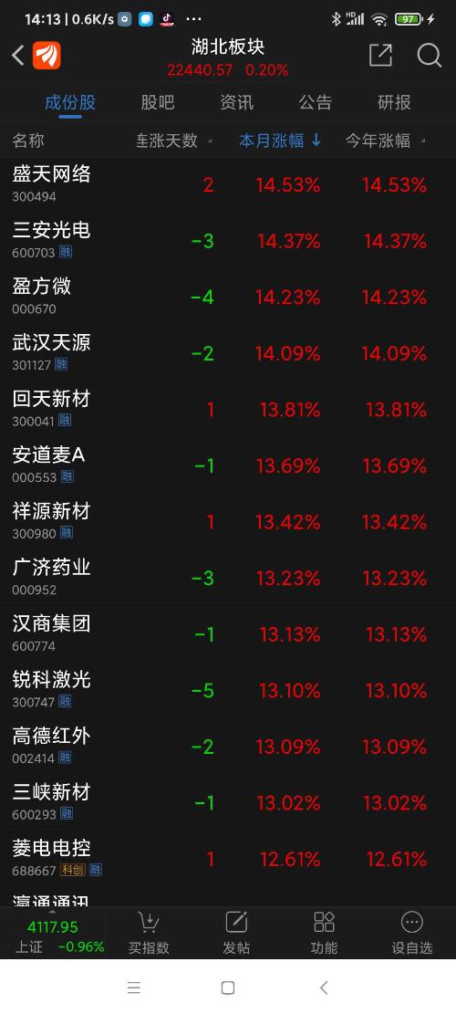 湖北板块26年元月涨幅7.19%,回盛生物名列湖北板块(共有154个股票)涨幅第三名(沪深板块)。