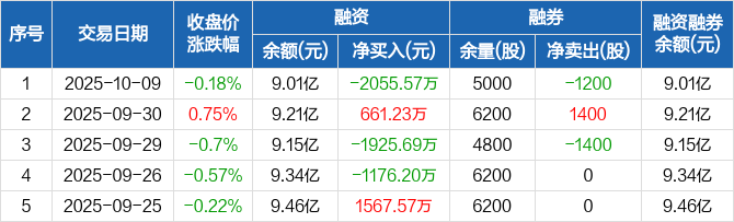 天阳科技:融资净偿还2055.57万元,融资余额9.01亿元(10-09)