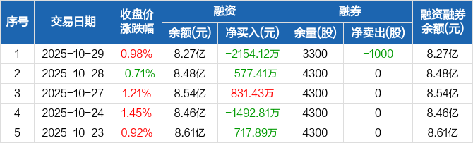 天阳科技:融资净偿还2154.12万元,融资余额8.27亿元(10-29)