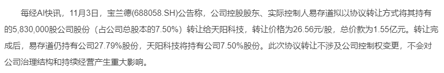 宝兰德的公告已经发了。天阳科技今晚几个公告?