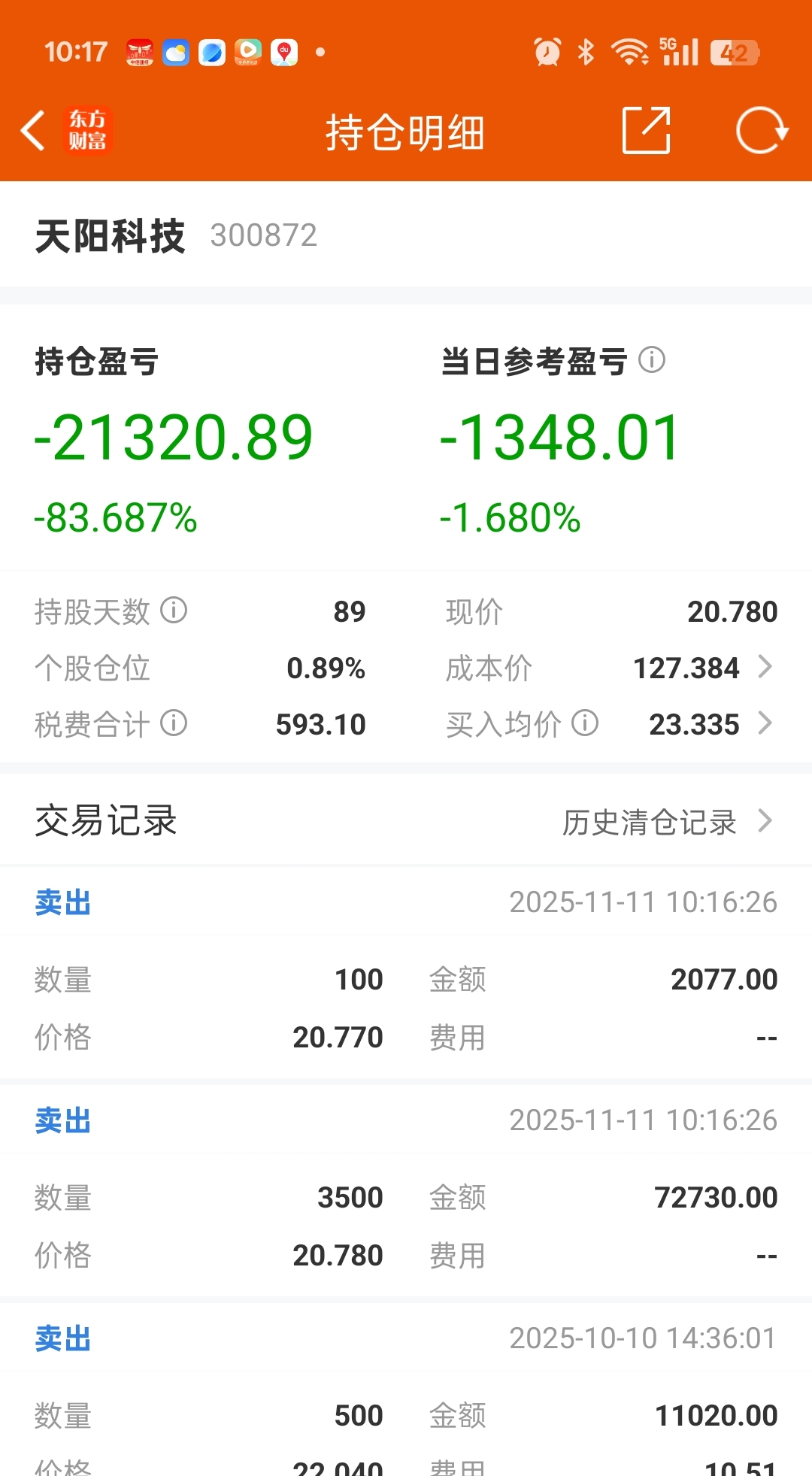 $天阳科技(SZ300872)$ #炒股日记# 止损了 真的垃圾