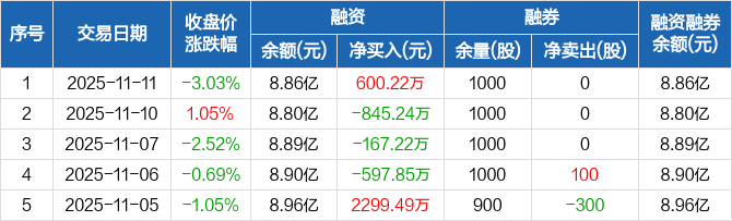 天阳科技:融资净买入600.22万元,融资余额8.86亿元(11-11)