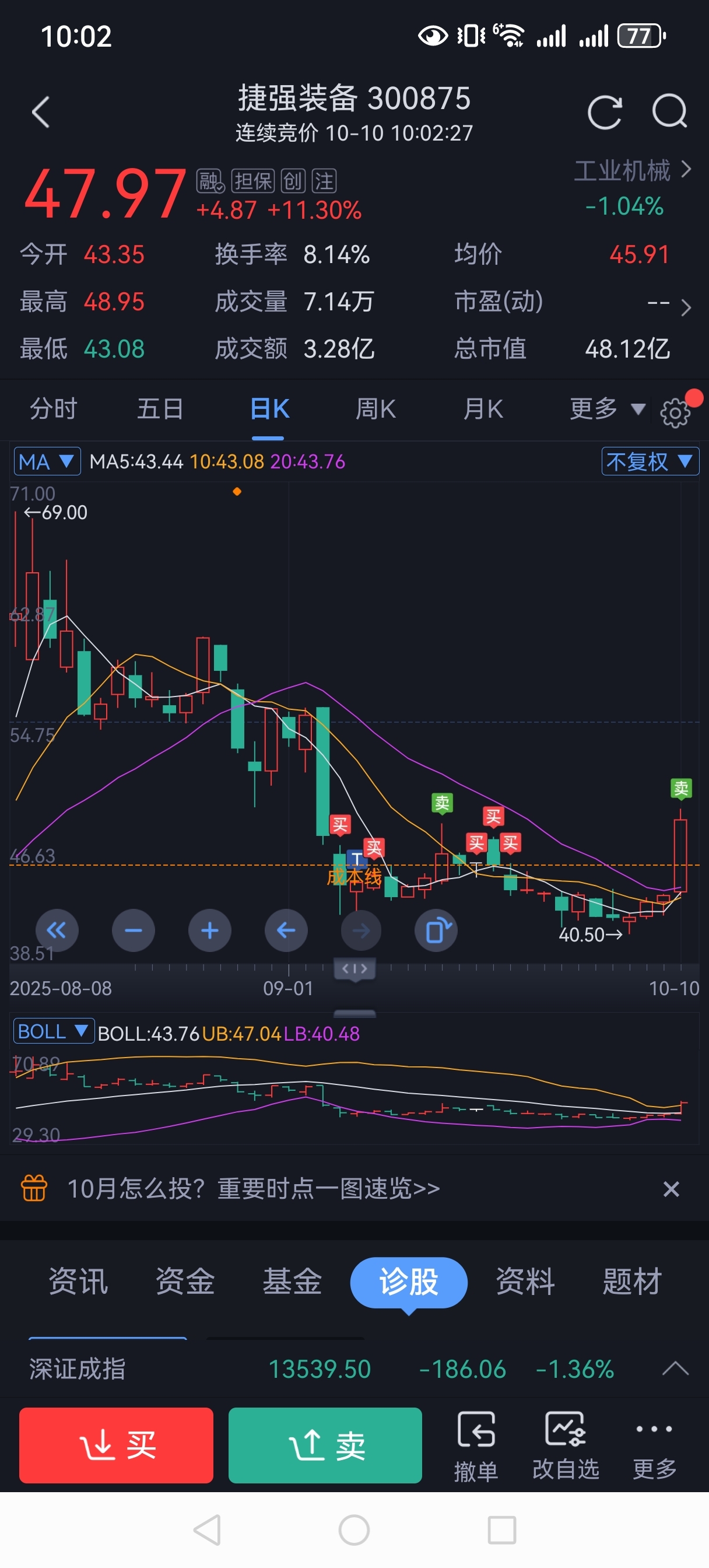 心不黑,盈利就好。盈利6个点走人。