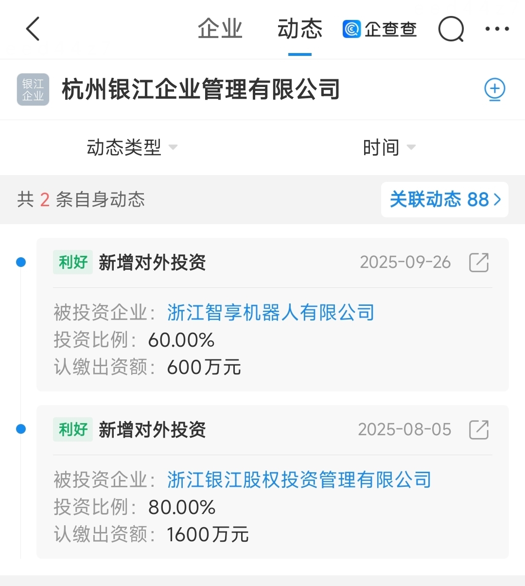 1. **控股平台领投**:杭州银江企业管理有限公司(银江技术关联主体)以60%持股比例控股浙江智享机器人有限公司,认缴出资额600万元,成为其第一大股东。浙江智享机器人定位“人工智能软件+硬件研发”,或承担E-BOT等终端设备的核心技术迭代与量产任务。