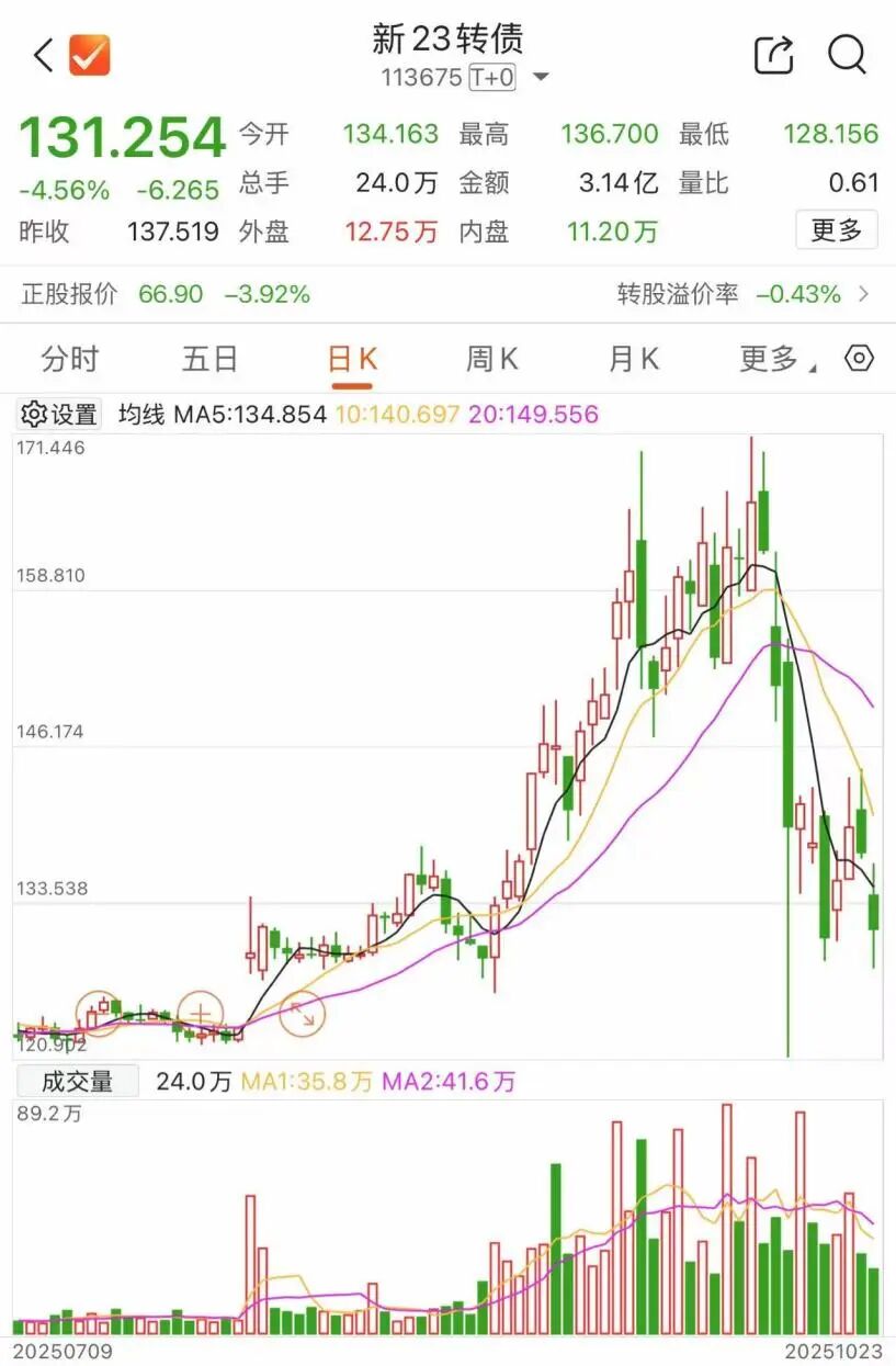 蒙泰转债、新23转债10月23日收盘价分别为144.000元/张和131.254元/张,如果投资者不及时交易或转股而被强制赎回,可能亏损分别超29%和23%。此前,三羊转债部分持有者就因未及时操作导致亏损超20%。