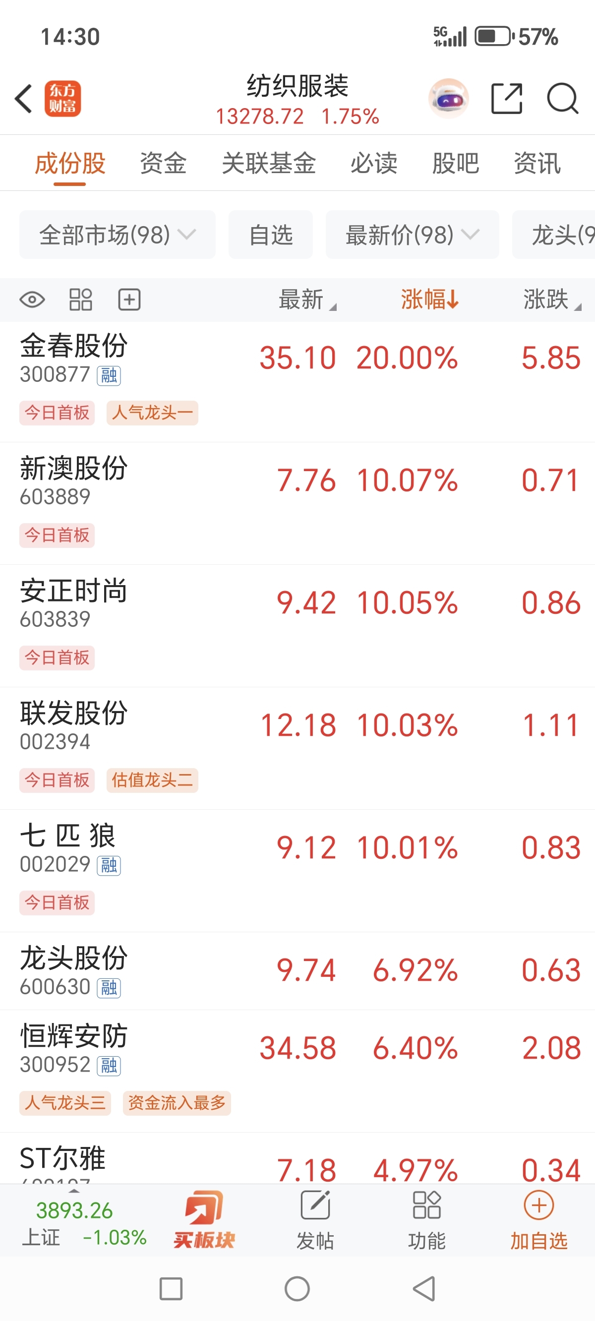 $金春股份(SZ300877)$ $安正时尚(SH603839)$ $七 匹 狼(SZ002029)$ 今天服装股涨停潮啊,这种好事儿怎么落不到我头上