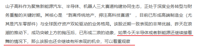 山子高科作为聚焦新能源汽车、半导体、机器人三大赛道构建协同生态,正处于深度业务转型与财务重整的关键时期。其核心是 “剥离传统地产,押注高科技赛道” ,目前已形成高端制造业(尤其是汽车零部件)与全球医疗资产双轮驱动的业务格局。今天无论是半导体还是新能源都是直接熄火的,在这种情况下是不需要继续考虑,能独善其身的概率是非常低的,所以直接就放弃了