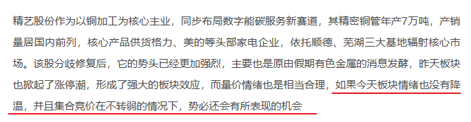 精艺股份作为以铜加工为核心主业,同步布局数字能碳服务新赛道,其精密铜管年产7万吨,产销量居国内前列,核心产品供货格力、美的等头部家电企业,依托顺德、芜湖三大基地辐射核心市场。集合竞价是非常弱势的,接近于核按钮了,板块情绪也是直接将至了冰点,参照于板块情绪也偏离了一定的轨道,前排趴下、后排进行了补涨,所以直接就放弃了
