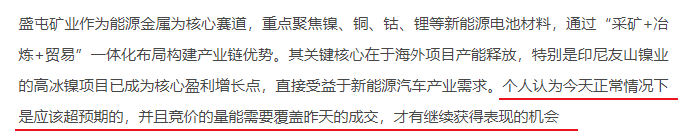 盛屯矿业作为能源金属为核心赛道,重点聚焦镍、铜、钴、锂等新能源电池材料,通过“采矿+冶炼+贸易”一体化布局构建产业链优势。其关键核心在于海外项目产能释放,特别是印尼友山镍业的高冰镍项目已成为核心盈利增长点,直接受益于新能源汽车产业需求。今天竞价是转弱了,量能也萎缩了不少,完全没有达到个人的预期观点,在盘中也是观察了一会儿,仍然没有转强的迹象,所以也选择了浮盈出局