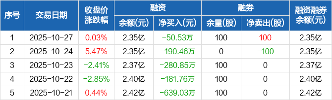 金春股份:连续5日融资净偿还累计1342.63万元(10-27)