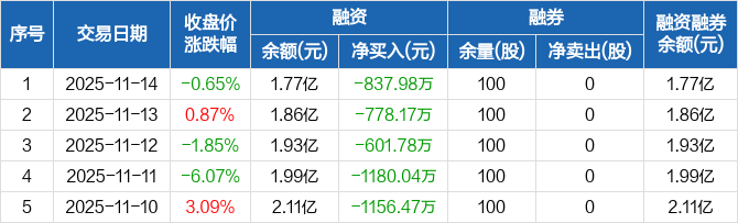 金春股份:连续5日融资净偿还累计4554.45万元(11-14)