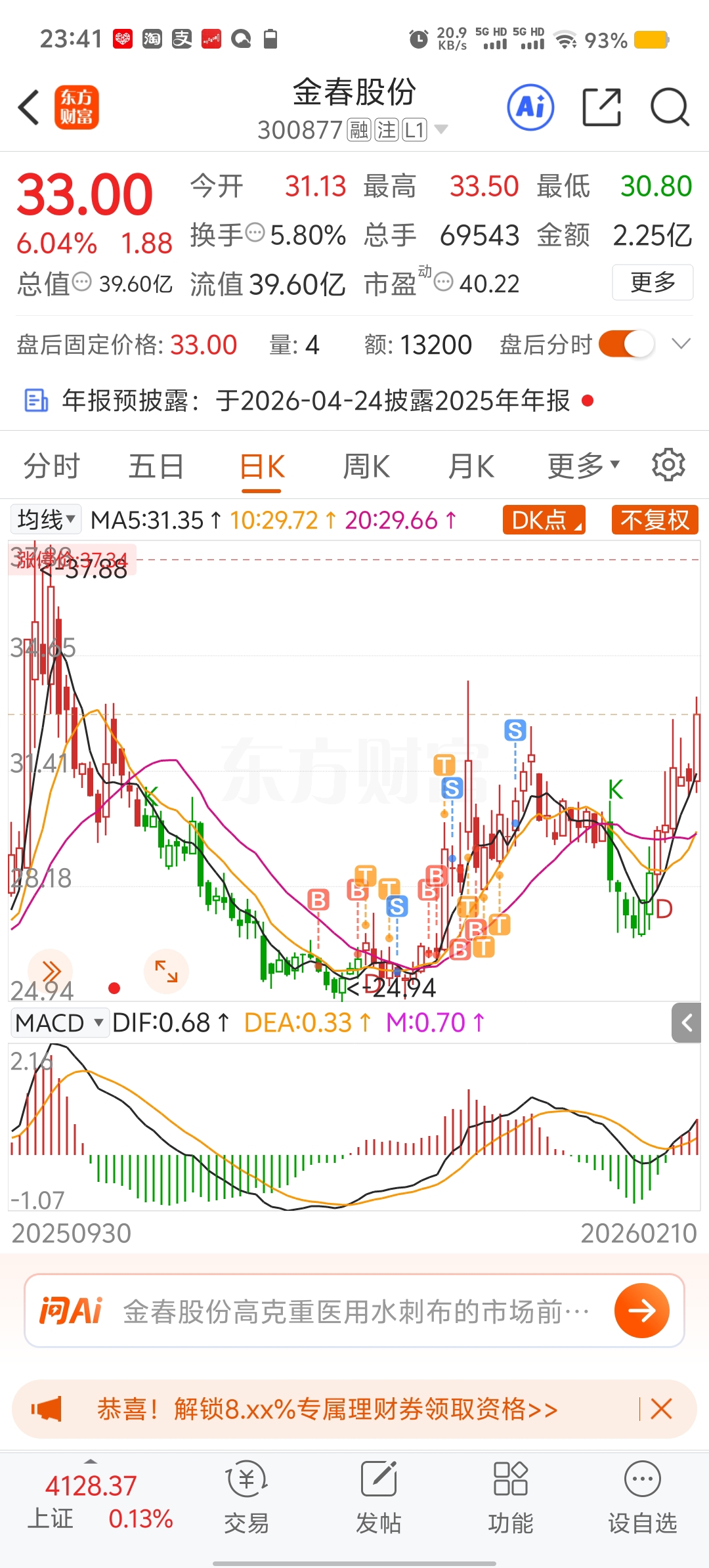 $金春股份(SZ300877)$ 唉,等着等着,不敢追了。