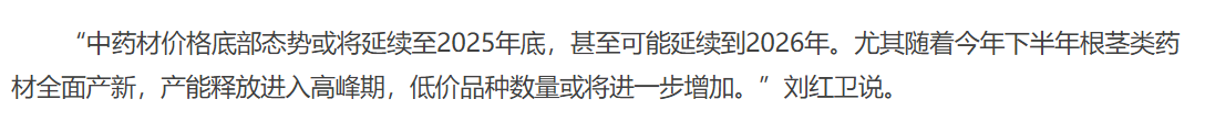 中药秋季产新应该要集中进市场了,中药原材料的价格应该还会走低,有专家说可能会延续
