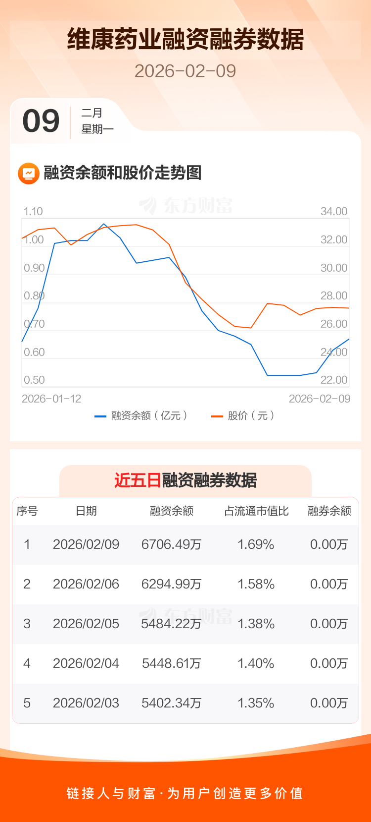 交易所最新数据显示,维康药业于2026年2月9日获融资买入1248.98万元,融资偿还837.48万元,当日融资净买入411.5万元。目前,该股融资余额6706.49万,占流通市值比例为1.69%。