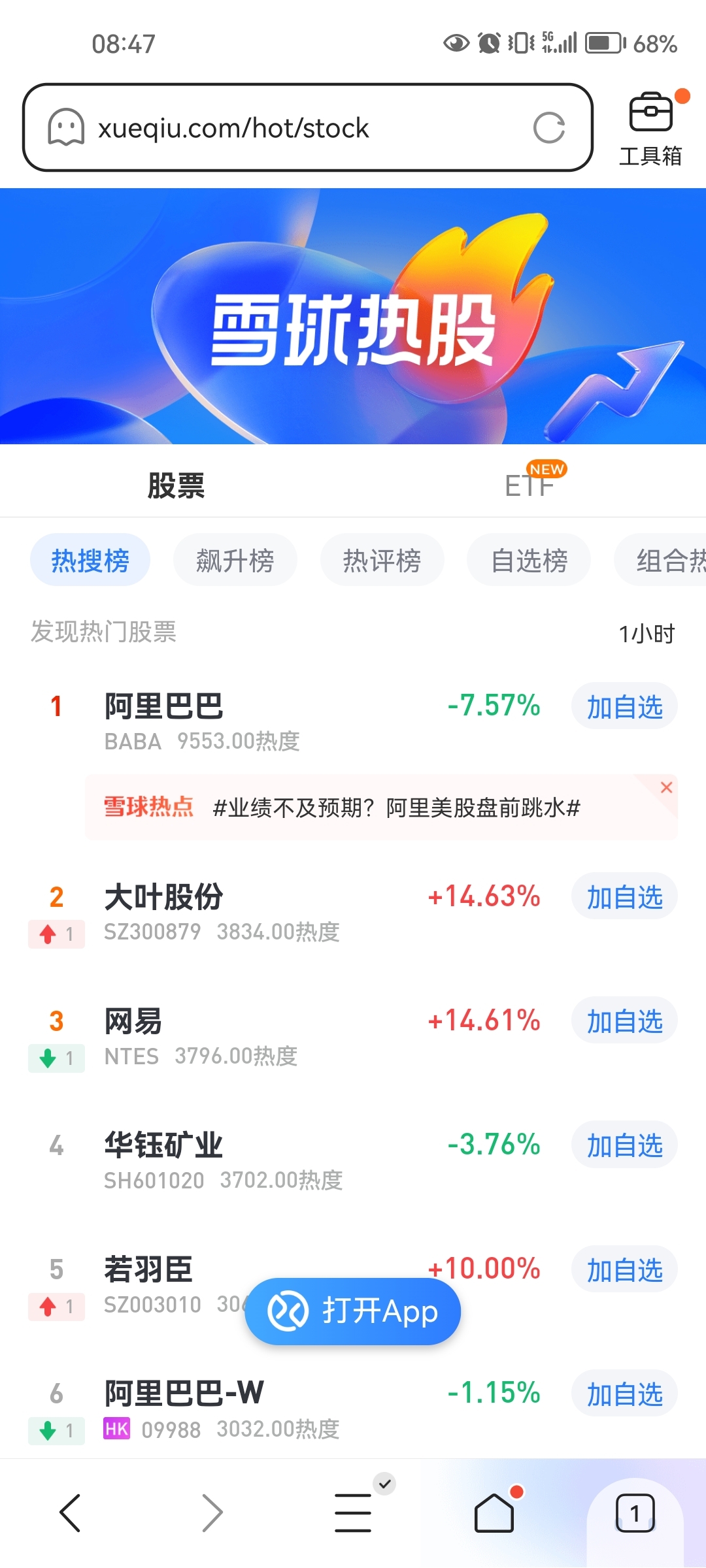 $大叶股份(SZ300879)$ 这人气值,今天20cm涨停